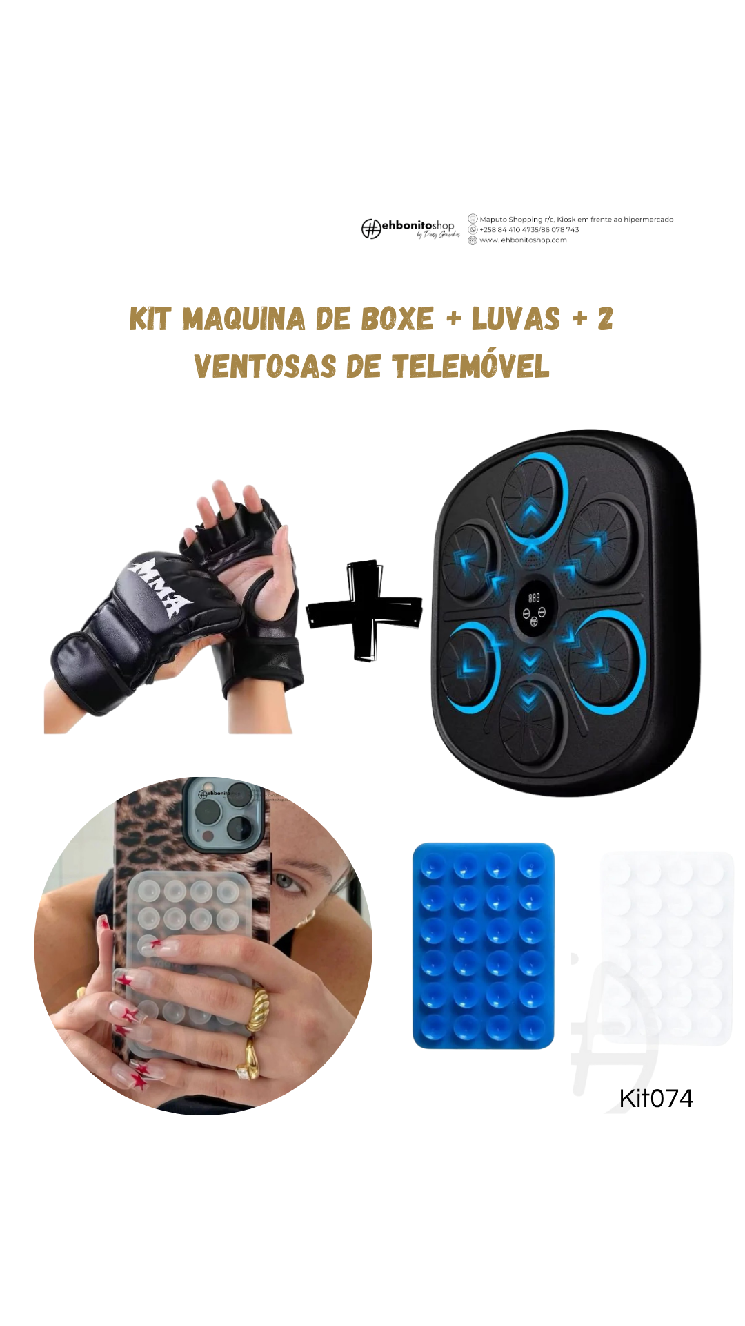 Kit Máquina de boxe + Luvas + 2 ventosas de telemóvel