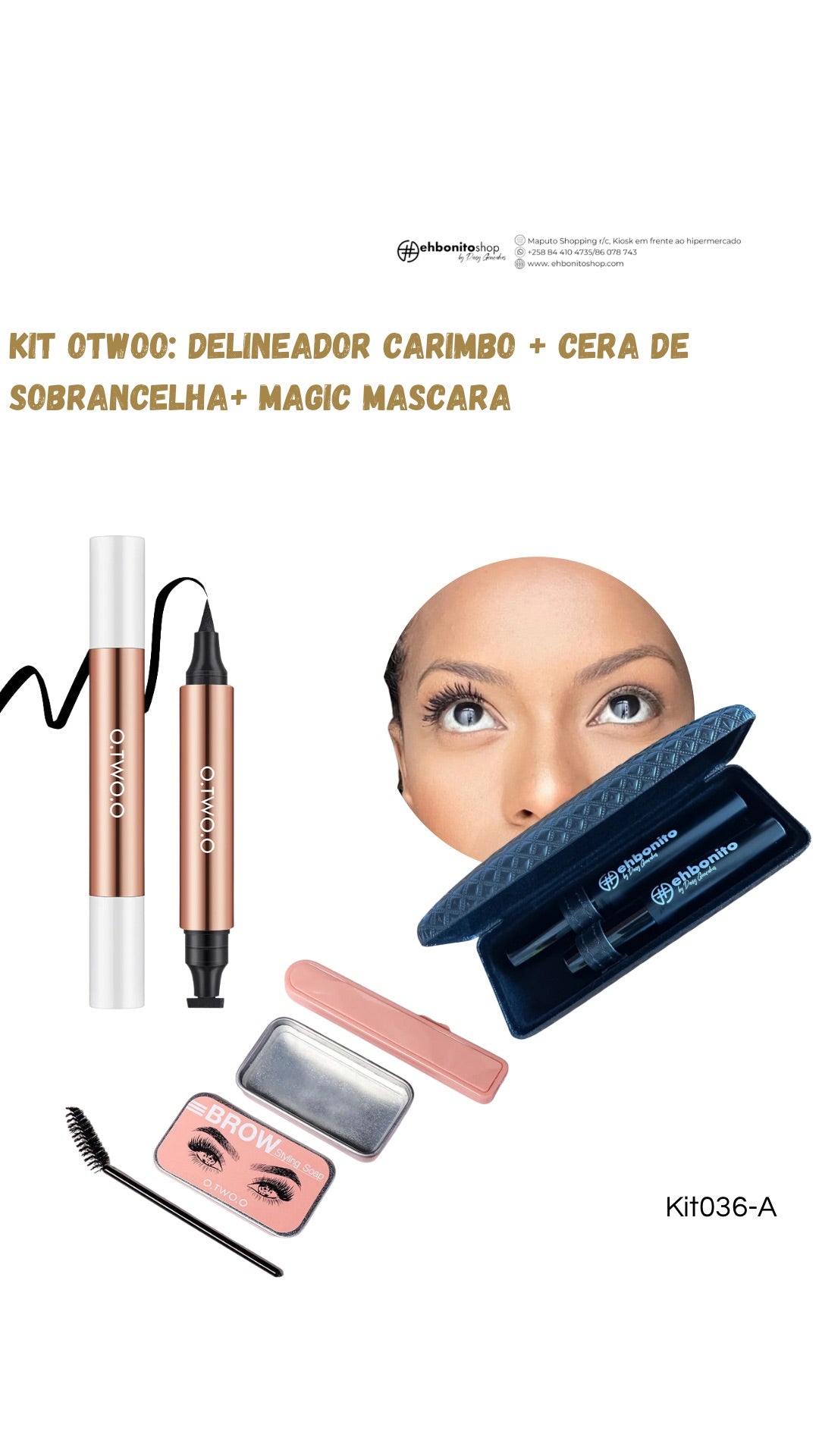 Kit otwoo: Delineador carimbo + cera de sobrancelha + magic mascara