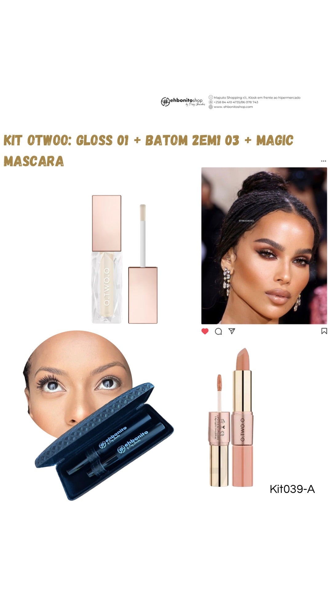 Kit Otwoo: Gloss 01 + Batom 2em1 03 + Magic mascara