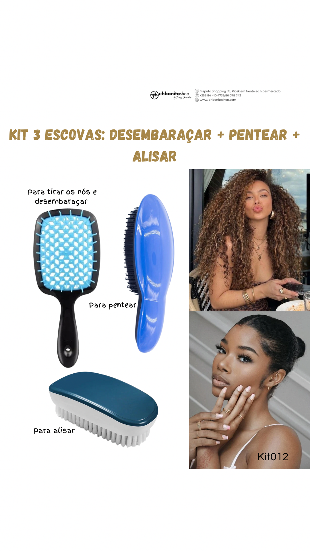 Kit 3 escovas: Desembaraçar, pentear e alisar